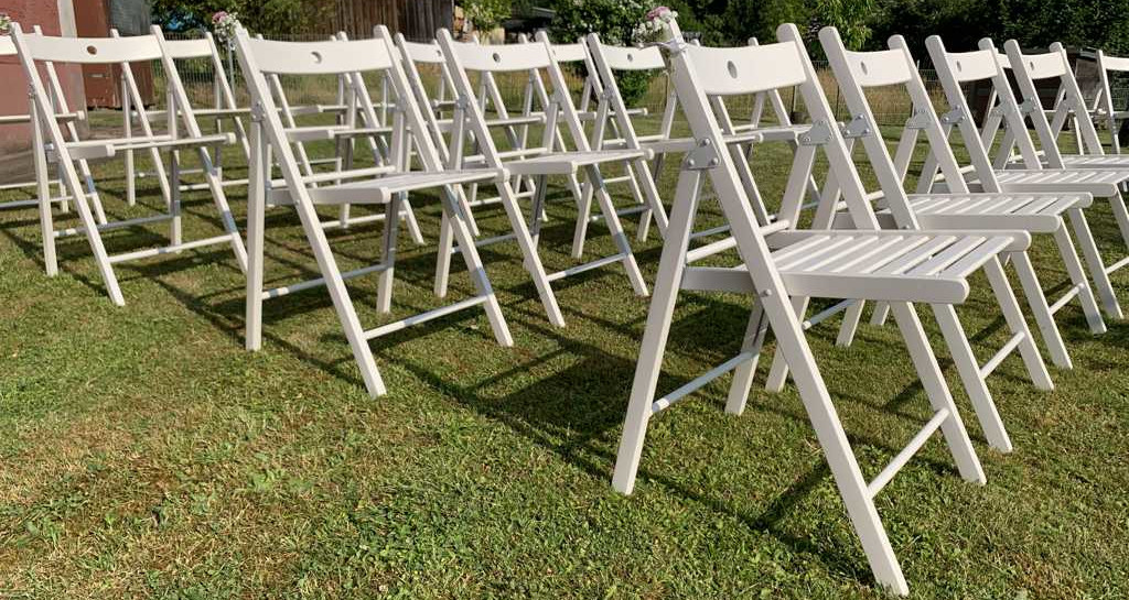 Angefangen haben wir mit dem Kauf von weißen Klappstühlen, welche wir für unsere freie Taufe verwendet haben.
